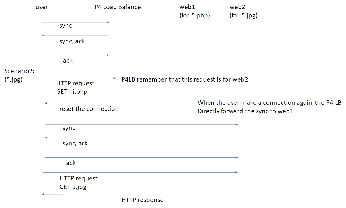 first. Then after the user send out the HTTP request. The P4 LB can tell that