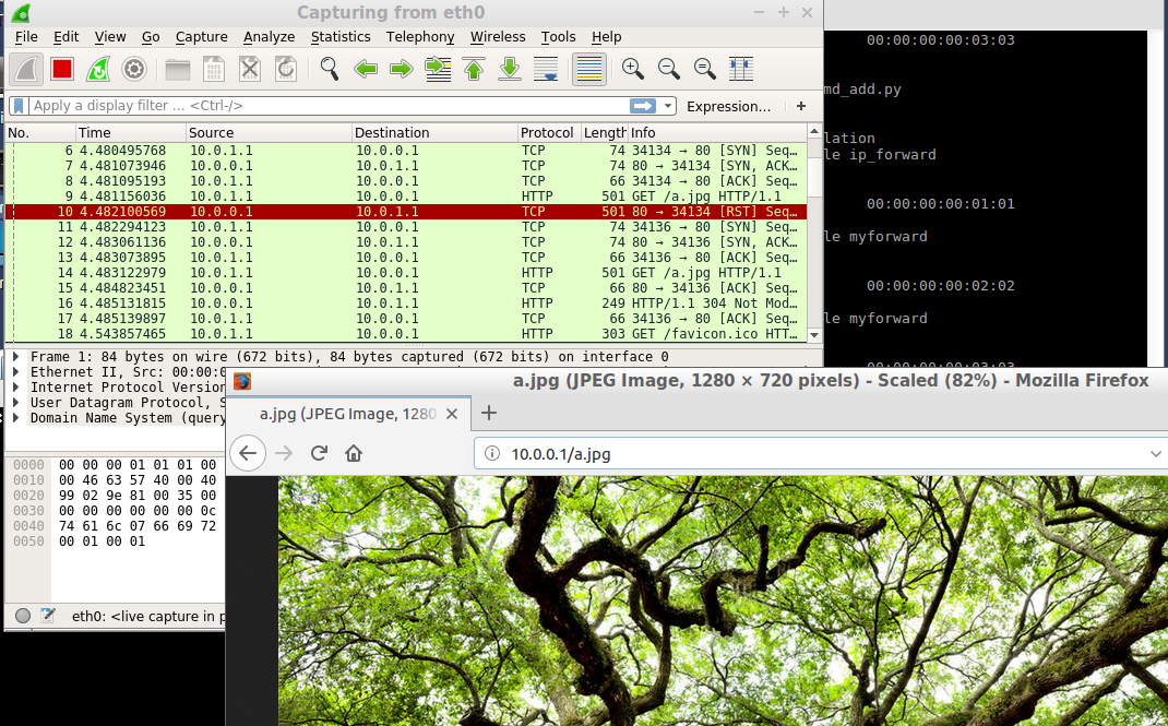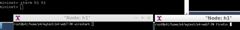 Open two terminals for h1. One for wireshark and the other is for firefox (Firefox will reconnect to the server again after receiving the TCP packet with “reset” flag.)