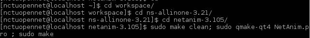 4.open a terminal to download the qt4 and qt4-devel to compile netansim. (Please refer to https://www.nsnam.org/wiki/NetAnim_3.105 for more information)