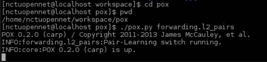 5. Open another terminal to start a pox controller for packet forwarding and then run OpenNet.