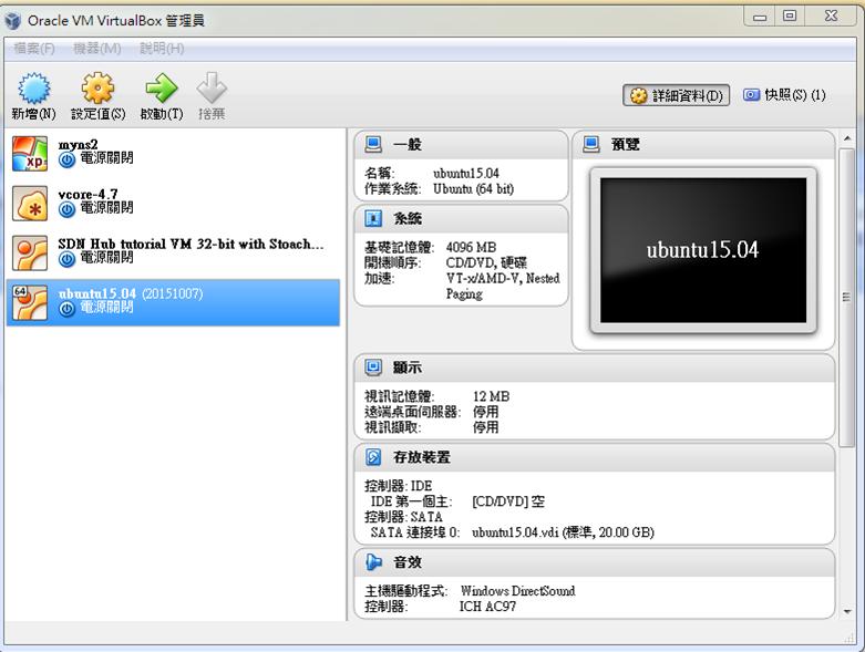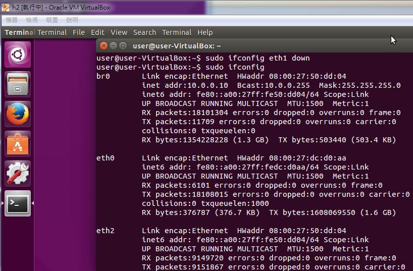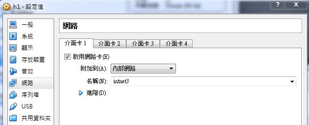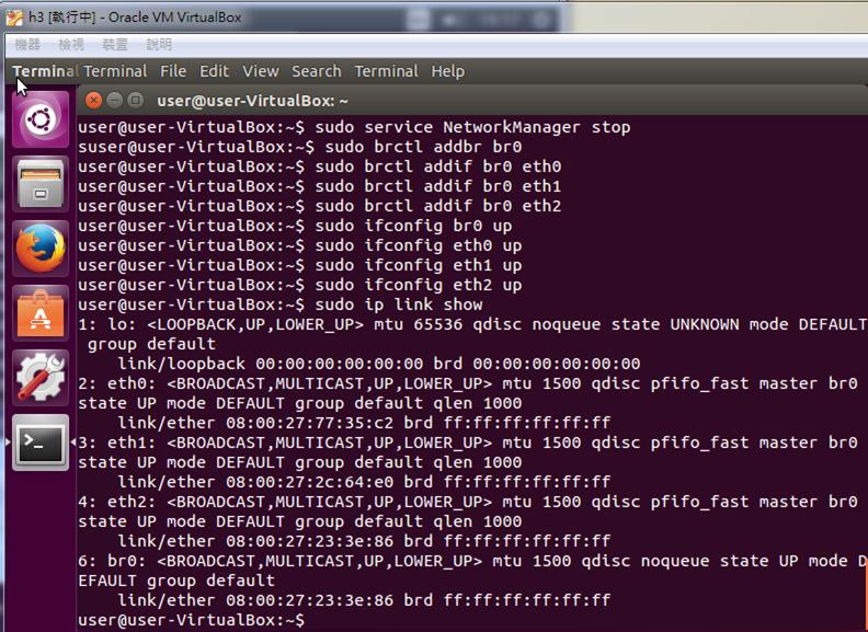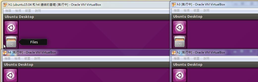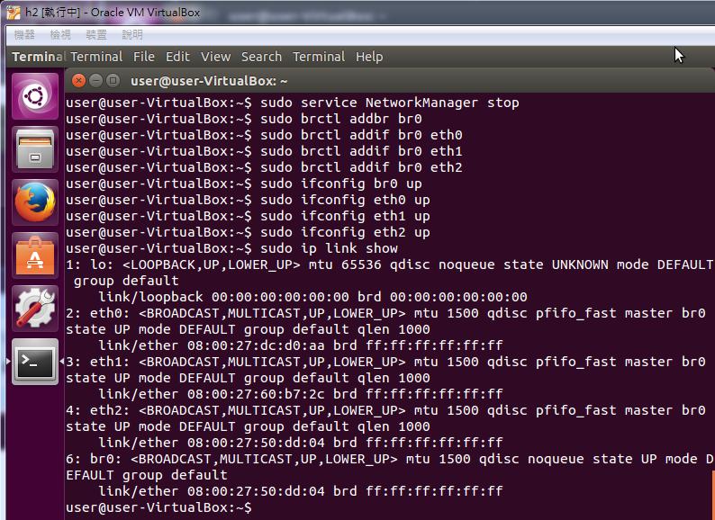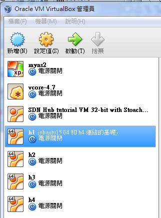 In this experiment, I will create 4 virtual machines in virtualbox. The first VM is h1 (host), the second is h2 (bridge), the third is h3 (bridge), and the fourth is h4 (host).