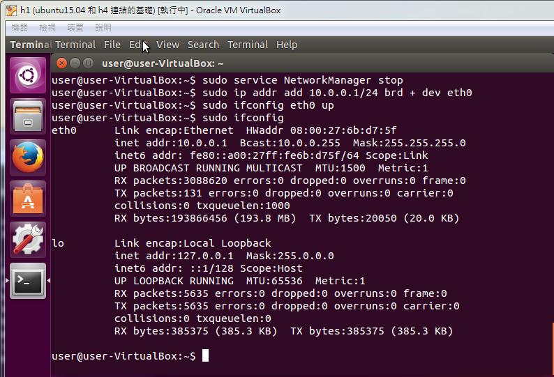 5. Configure the IP address for h1.