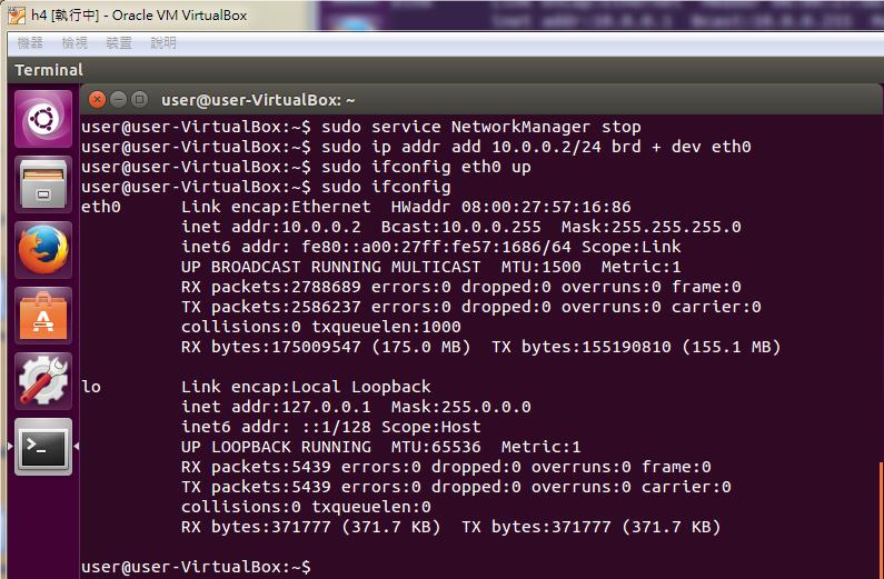 6. Configure the IP address for h4.